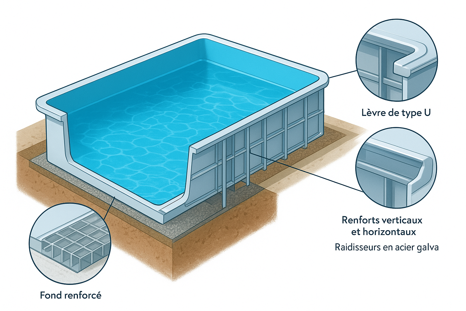 Une piscine préfabriquée en polyester (ou coque) est fabriquée en usine, puis livrée prête à poser sur votre terrain. Elle offre une installation rapide, des finitions de qualité et un entretien simplifié.